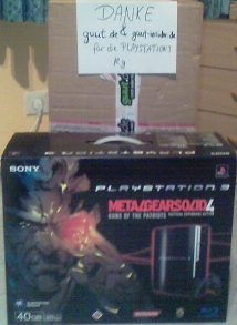 Auch wir hatten Spannung bis in die Haarspitzen. Aus dem vollen Topf der hart „erkämpften“ Anteile hat unsere Glücksfee die Gewinner gezogen. Die 40 MB schwere Playstation 3 incl. Metal Gear Solid 4 geht an kg. kg hat sich nicht nur sehr intensiv am Gewinnspiel beteiligt, er hat sich auch mit Fortuna verbündet.