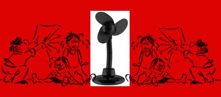 Die Zeit ist schon überreif! Noch mehr solcher heißen Sommertage kann keiner verkraften. Die Arbeit am PC wird zur Qual. Schweißbäche lassen die Kleidung am Körper kleben wie Frischhaltefolie. Man sieht den ganzen Tag aus wie frisch geduscht und nicht immer ist ein 10 kg schwerer Standventilator in eurer Nähe. Für knapp 10 € machen wir dem Leiden mit einem USB-Tischventilator ein Ende. Holt euch die frische Brise aus der Schnittstelle. Es sei denn, ihr habt nicht genug investiert und keinen USB-Anschluss mehr frei. Dann schwitzt mal ruhig weiter.