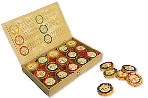 Feinste Plantagen-Schokolade aus ausgewählten Kakao-Anbaugebieten auf Java, Costa Rica, in Venezuela, Ecuador, Santo Domingo und Ghana sorgen für edelsten Schokoladen-Genuss. Ein unterschiedlich hoher Kakaogehalt der Dublonen von 35% bis hin zu wahrhaft kräftigen 85% sorgt für den wahren Kick.