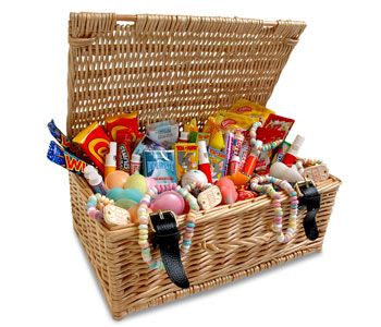 Doch es gibt sie noch. In diesem Retro-Süßigkeiten Weidenkörbchen, der vollgepackt ist mit Sachen wie Brausepulver, Fruchtsalat, Dib Dabs, Dolly Mixtures, Black Jacks, Flying Saucers und alle möglichen Arten von antiken Süßigkeiten.