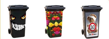 Dekoriert eure Abfalltonne mit den hübschen TonnenStrümpfen und die Langeweile auf unseren Straßen hat ein Ende. Es gibt einige nette Motive.