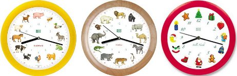 Wanduhren, die es in sich haben, KidsWord, KidsZoo oder StilleNacht.