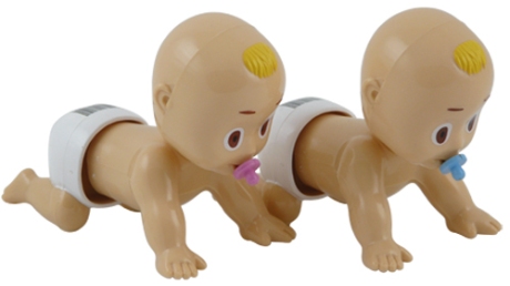 Eine lustige Geschenk-Idee zum Aufziehen! Die beiden Babys starten das Rennen, sobald sie aufgezogen wurden. Lacher sind garantiert.