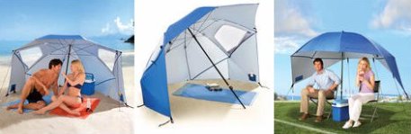Jetzt muß Super-Brella helfen. Mit einem kurzen Handgriff könnt ihr Super-Brella aufspannen. Spießt den 1,30 m langen Schirmstock schräg in den Sand oder Rasen. Kurz die Seitenteile einklappen und befestigen (3 Ankerleinen und 2 x 4 Heringe gehören zum Lieferumfang). Schon genießt ihr eine Sonnenmuschel, die auch einer Brise (bis Windstärke 4) problemlos widersteht. Ideal für bis zu 3 Personen.