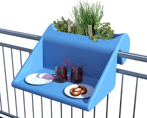 Diese hübsche Tisch- und Ablagefläche mit integriertem Blumenkasten macht schon etwas her – aber, wie gesagt, vorzugsweise in den Sommermonaten.