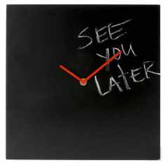 Obwohl: Welcher Pädagoge möchte denn schon in seiner knapp bemessenen Freizeit auf seine geliebte Kreidetafel verzichten? Nicht einer! Ich hoffe aber, dass nicht Abend für Abend der Deutsch-Lehrer seine literarischen Ergüsse kreidemäßig dieser Wanduhr Kreidetafel zumutet oder gar der Mathe-Lehrer sie mit Binomische Formeln oder ähnlich Grässlichem verunstaltet.