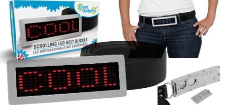 Jetzt mal im Ernst. Die in verschiedenen Ausführungen -Chrom/Strass/Blau/Rot- angebotene LED-Gürtelschnalle verfügt über 6 „Speicherebenen“, die du nutzen kannst, um mit bis zu 512 Zeichen bzw. 256 Zeichen, deinen Mitmenschen coole Botschaften zu senden.