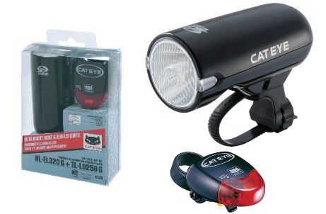Diodenbatterieleuchten-Set CatEye bestehend aus: HL-EL 320-G / TL-LD 270-G kostet exakt 52,50 €. Ein Preis, den man für Sicherheit im Straßenverkehr als sehr gering bezeichnen darf.