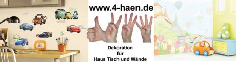 Mach’ doch mal Tapetenwechsel und richte dich neu ein mit Wanddekorationen von 4-haen.de! Egal, nur ein paar Akzente setzen oder ein ganzes Themenzimmer mit Fototapete gestalten. Hier findest du sie alle! Wandaufkleber, Wandsticker, Wandtattoos vom Markenhersteller in hervorragender Qualität aus USA und UK sowie ein großes Sortiment saisonaler Dekorations- und Geschenkartikel.