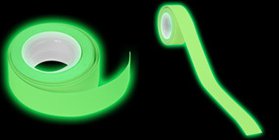 Abhilfe schafft hier die Rolle Leuchtendes Klebeband “Glow in the Dark“. Dieses selbstklebende Band lässt sich wie ein normaler Klebefilm handhaben, bietet aber ungleich mehr. Abmessungen: 2 cm Breite und 2 m Länge