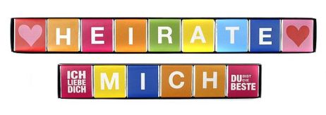 Besorge dir schnellstens die Schokolade mit Namen Loveletters Schokotäfelchen. Personalisierte Schokolade - die Schiene mit 6 Täfelchenoder oder die Schiene mit 9 Täfelchen. Was ist sie/er dir wert?