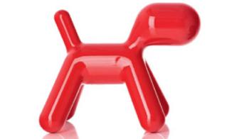 Hocker, Dekorationsobjekt, Spielzeug Puppy aus rot transparentem Polykarbonat, eine Sonderedition des seit Jahren beliebten Hundes aus der Feder des finnischen Designers Eero Aarnio, erfüllt viele Funktionen und sorgt so nicht nur für reichlich Spaß im Kinderzimmer sondern macht auch im Wohnzimmer eine gute Figur.