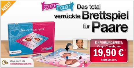 Couple Trouble – Das total verrückte Brettspiel für Paare. Du hast noch keinen Trouble? Dann wird es aber allerhöchste Zeit.